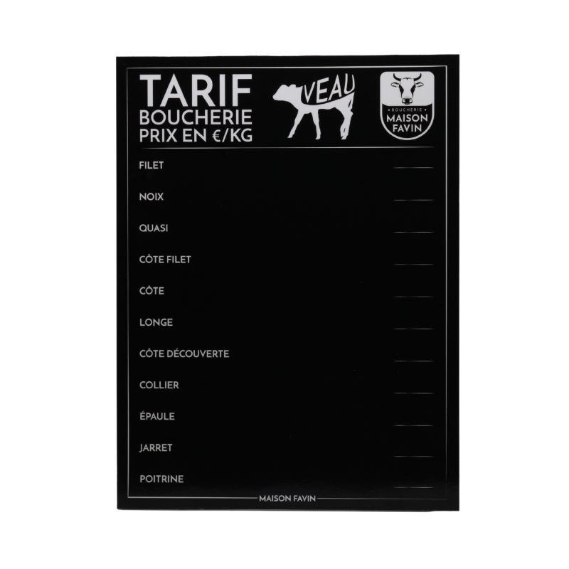 Où acheter son panneau tarif boucherie / charcuterie ?